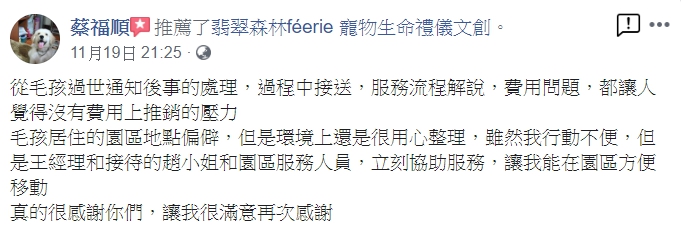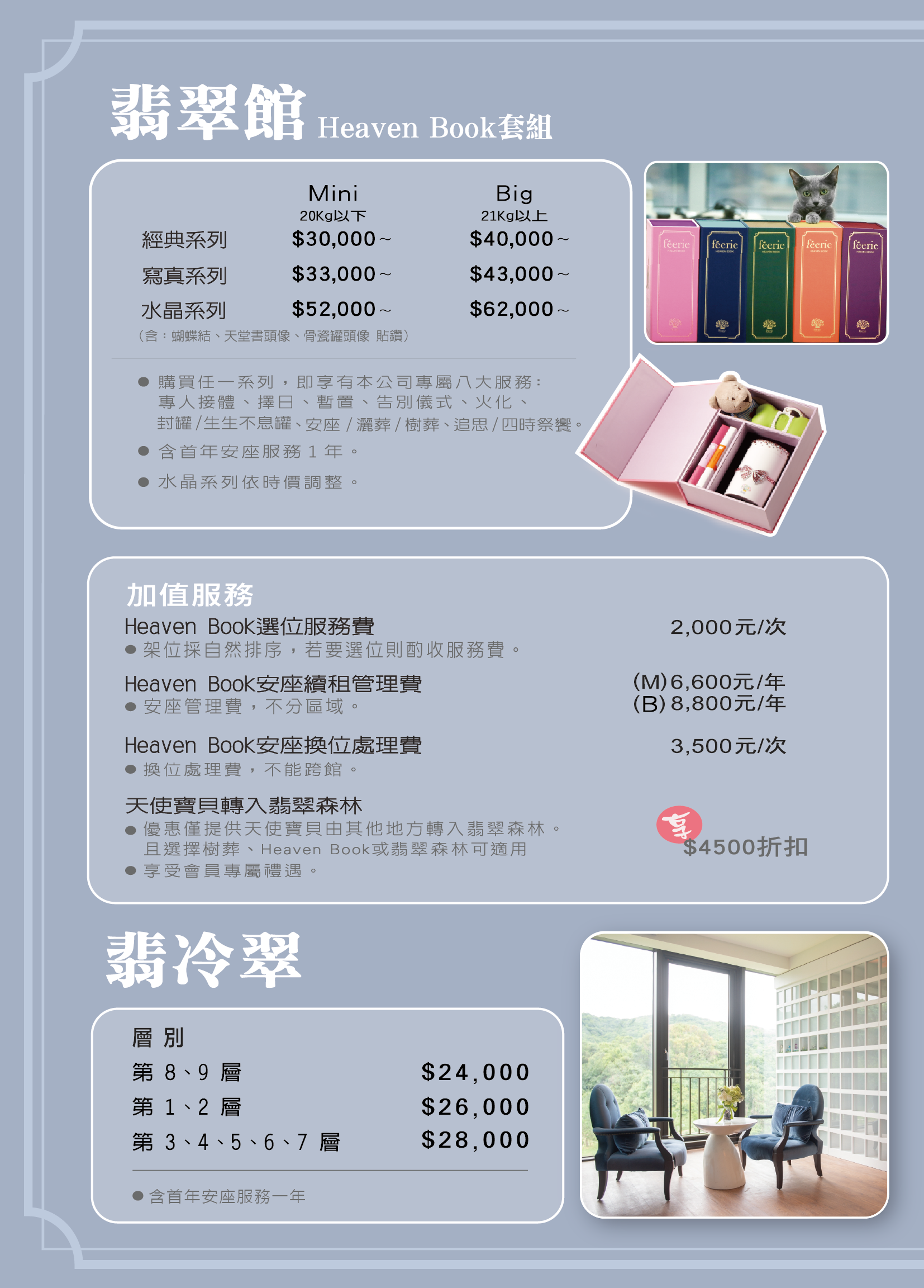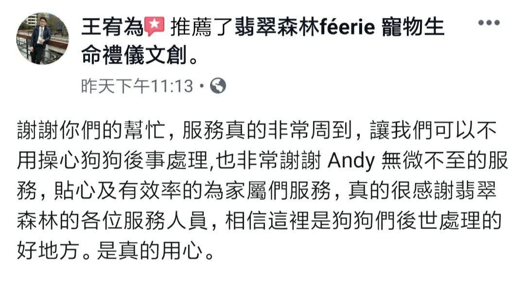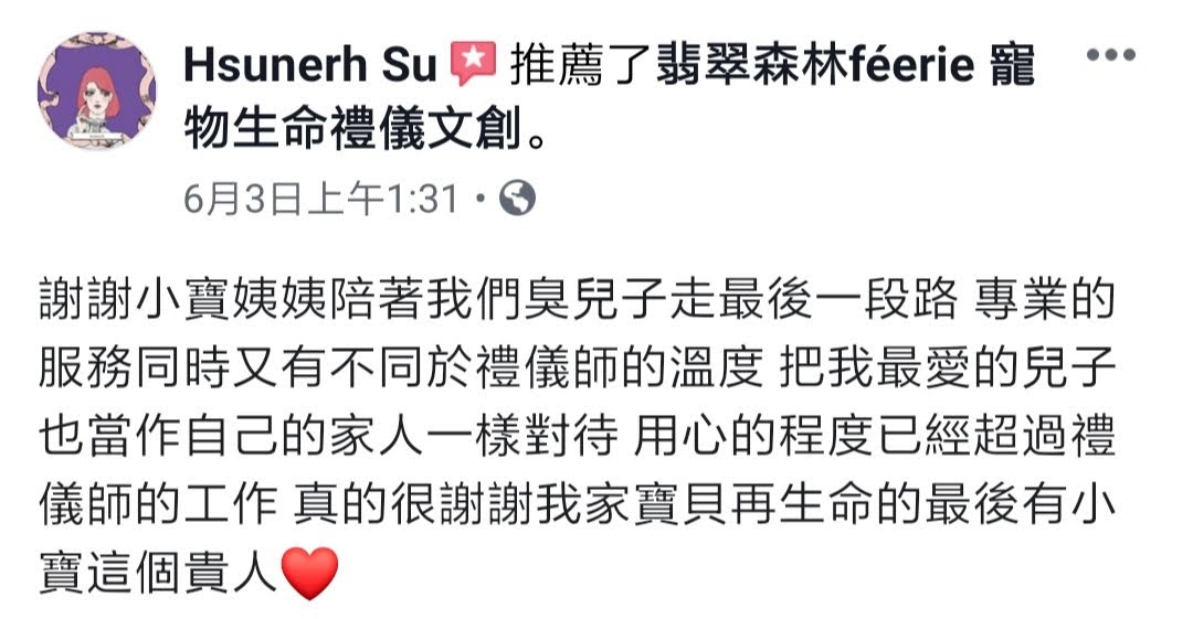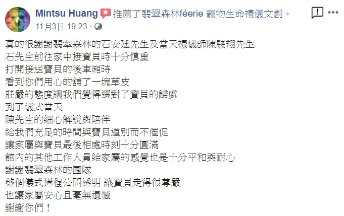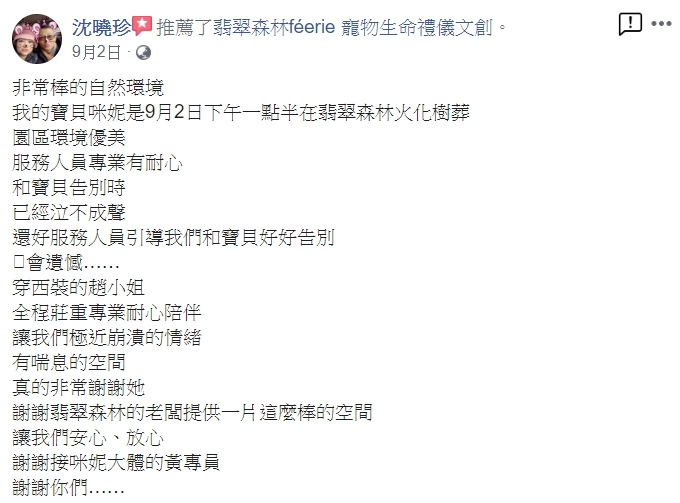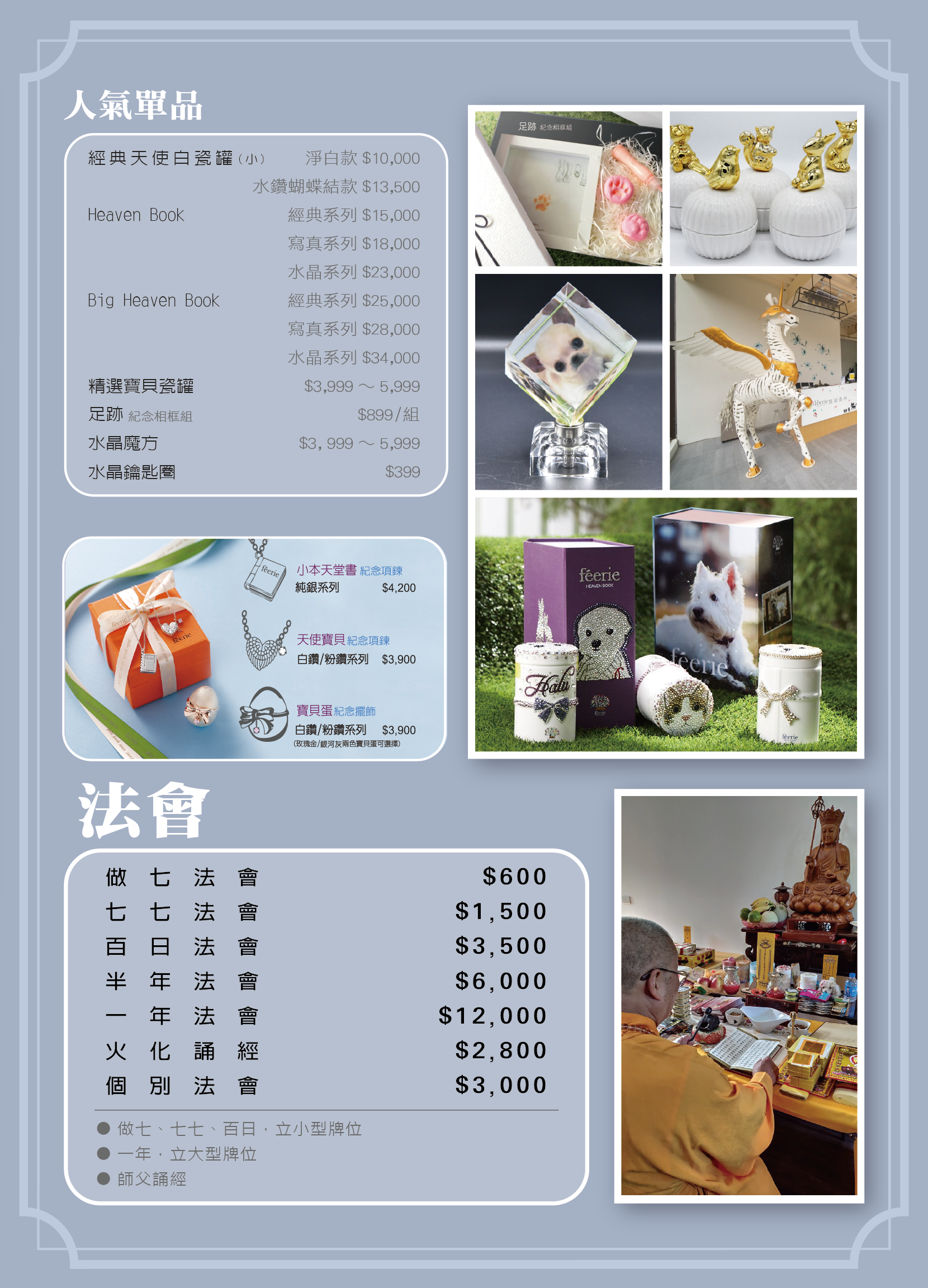 專任寵物禮儀師執行寵物淨身服務、告別式,家屬可選擇中式信仰(佛道教、民間信仰)或西式信仰(天主教、基督教)執行告別式。