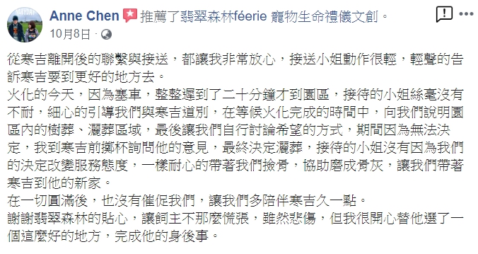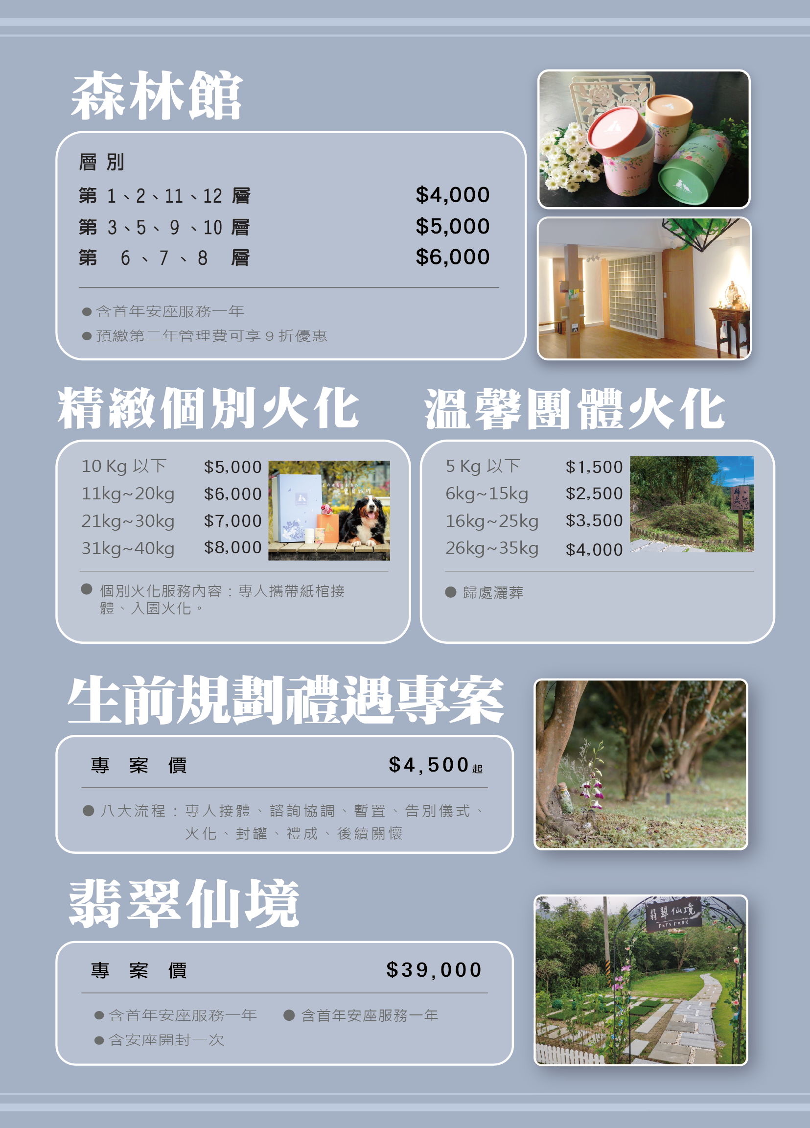 寵物禮儀師依照家屬所購買之安座配套,執行安座服務,安座期滿可選擇續租,也可選擇免費大眾櫻花樹葬,或在園區「歸處」灑葬。