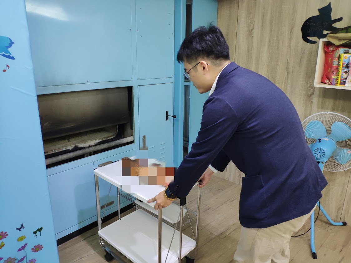 火化完成後,專任寵物禮儀師執行撿骨、納罐與封罐服務。